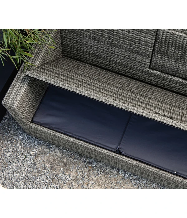 Wie schön, dass es jetzt Gartenmöbel gibt, die den gleichen Komfort bieten wie die Indoor-Möbel. Und die mit dem gleichen hohen Anspruch an Design und Qualität gefertigt werden, aber zugleich mit bester Wetterfestigkeit punkten. Und obwohl diese vielen Pluspunkte inzwischen auf viele Gartenmöbel zutreffen, freuen wir uns, Ihnen mit der Dehner Flecht-Truhenbank ‘Föhr‘ ein ganz besonderes Modell vorstellen zu können. Ein Loungesofa, das Sie mit einem Komfort verwöhnen wird, den so manches Indoor-Sofa nicht hat. Lassen Sie sich bald in jeder freien Minute auf Ihr neues Gartensofa sinken und spüren Sie, wie die vielen Polster und Kissen Sie wunderbar weich umfangen und Ihnen die Stunden versüßen. Mit einer stattlichen Breite von 188 cm bietet die Dehner Flecht-Truhenbank ‘Föhr‘ bequem bis zu 3 Sitzplätze; sind Sie allein, können Sie sich aber auch lang darauf ausstrecken und ein kleines Nickerchen machen. Und ist schlechtes Wetter angesagt, verstauen Sie einfach die Polster und Kissen in dem Raum unter der Sitzfläche. Lassen Sie jetzt die Dehner Flecht-Truhenbank ‘Föhr‘ Ihren Sommer noch schöner machen!