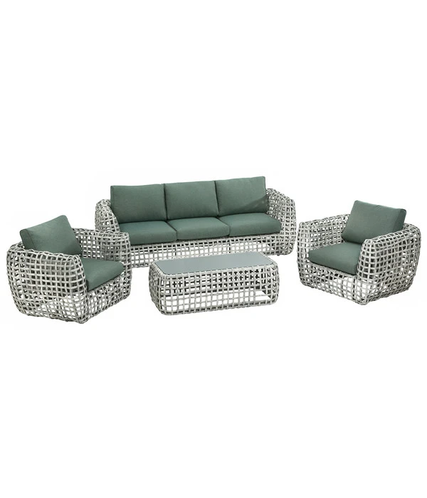 Inkl. 1 Tisch, 1 Sofa, 2 Sessel, Sitz- und Rückenkissen